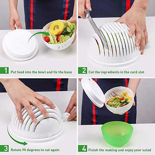 Salad Cutter Bowl, Kitchen Komforts 60 Seconds Salad Maker Chopper Bowl Easy Vegetable and Fruit Cutter Bowl for Lettuce, Fruits and Vegetables - Make Your Salad in 60 Seconds