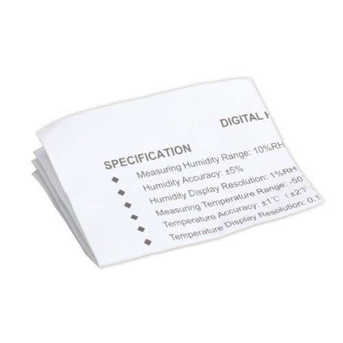 -. Feature : 2 in 1 design Celsius Thermometer and Hygrometer / Clear LCD display, easy to read / Ultra mini size, portable to carry / Temperature Measuring Range: -20℃-+70℃; Humidity Measuring Range: 10%-99%RH; Temperature Measurement Accuracy: ±℃ / Humidity Measurement Accuracy: ±5%RH; Display Resolution: 0.1℃(temperature), 1%RH(humidity); Powered by: 1 x 1.5V LR44 button battery (included); Size: 44*15mm (D*T)