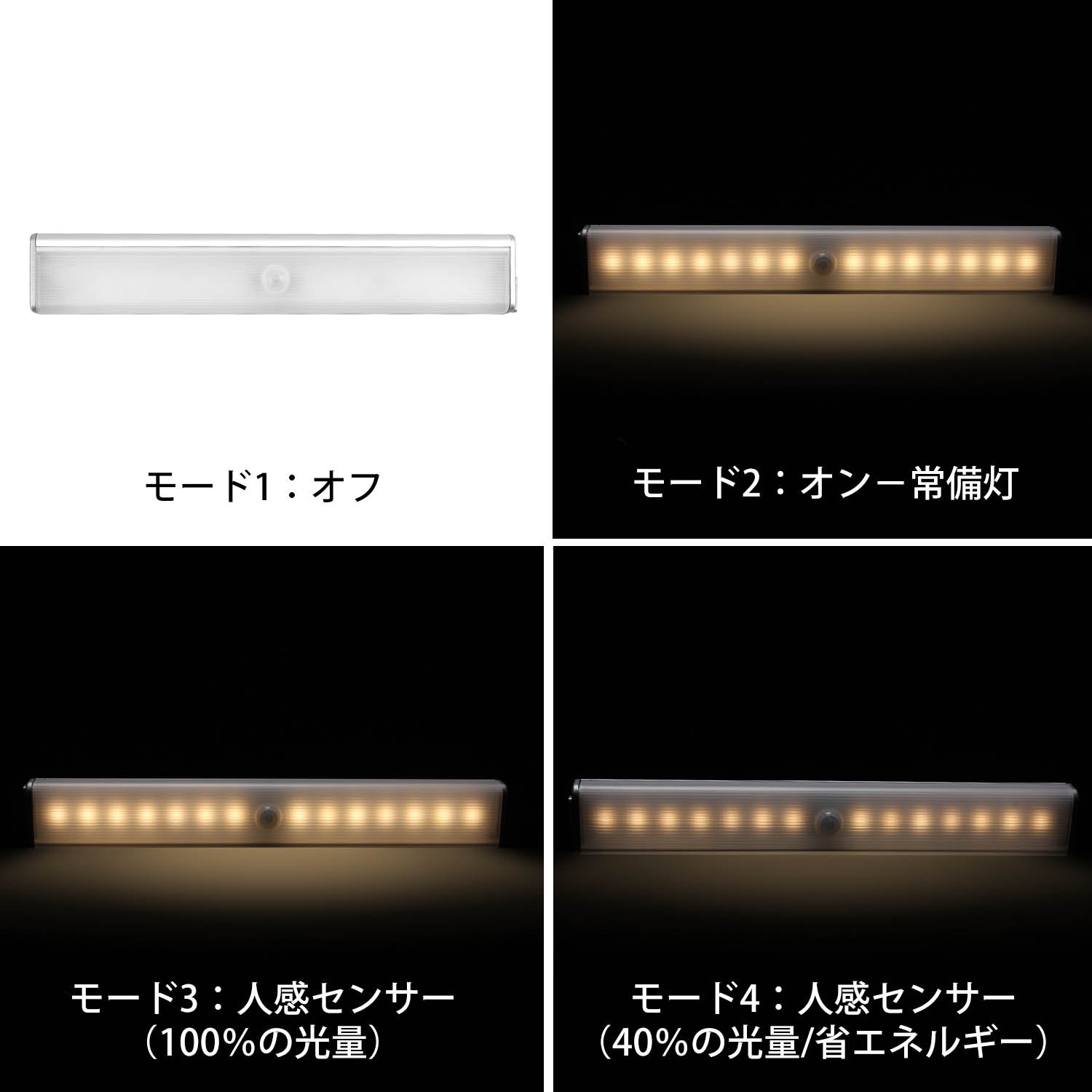 Mode 4: 3 lux or less, human sensor, illumination low (40%)