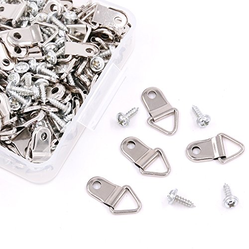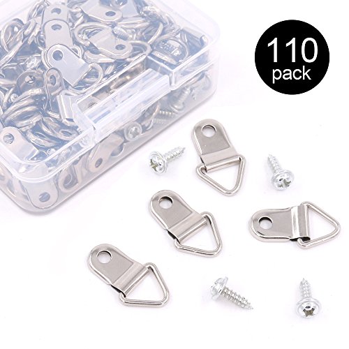 Findfly 110Pcs Small Triangle Ring Picture Hangers Frame Hanging Hangers Single Hole with Screws for Wooden Frame and Cross stitch