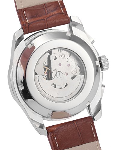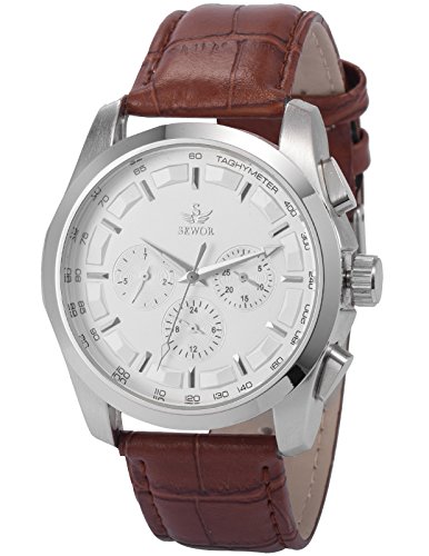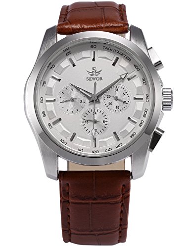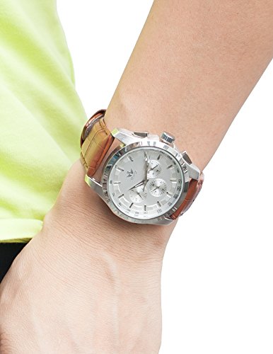 AMPM24 화이트 다이얼 자동기계 식날짜 요일 표시 맨즈 브라운 레더 밴드 손목시계 PMW355