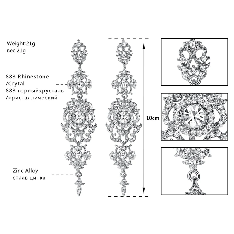 Style:Drop/Long Earrings/ Silver Wedding Earrings/Crystal Earrings for Women