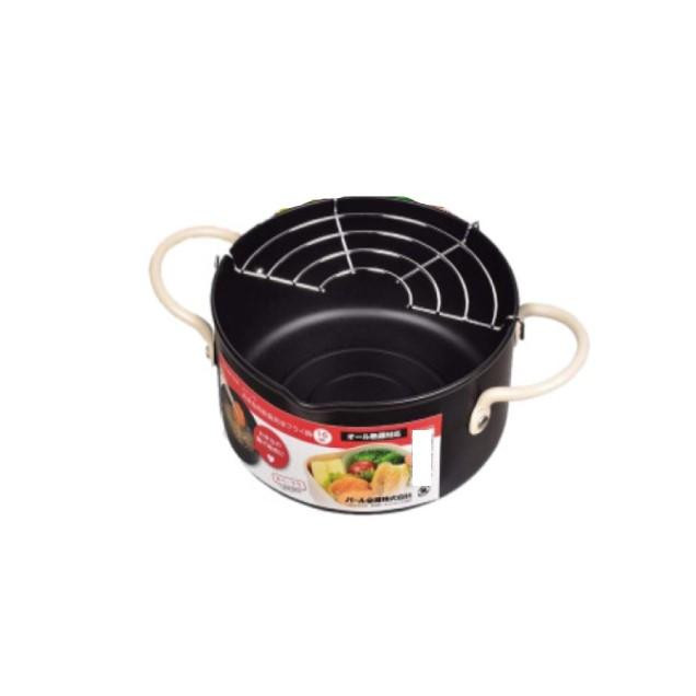 鍋が小さいので油がすぐに温まり、忙しい朝のお弁当作りに便利です。油きりに便利なアミ付き。 |