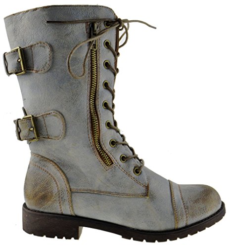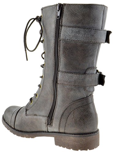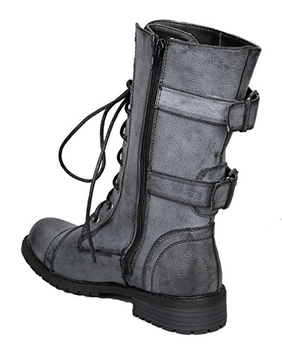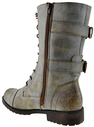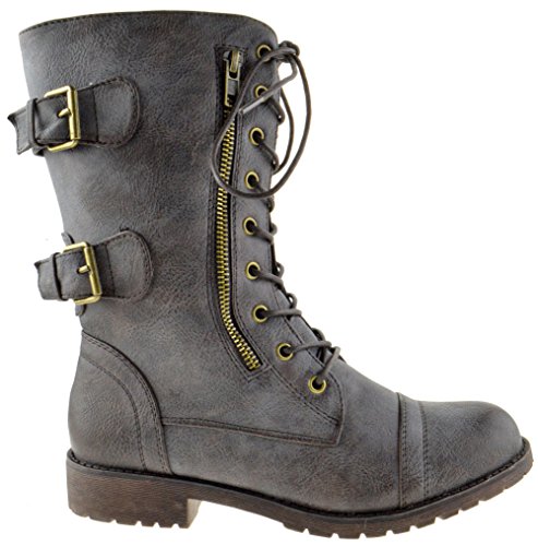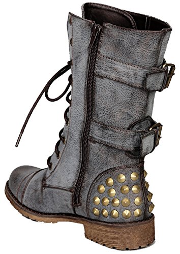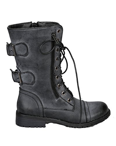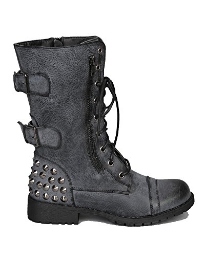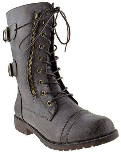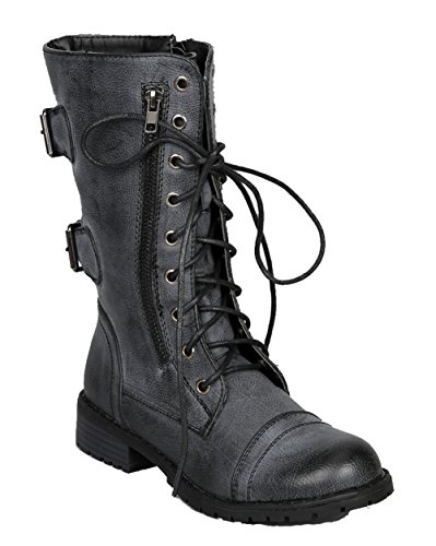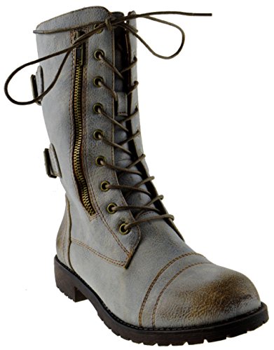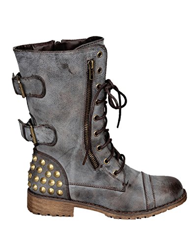 Product Description The classic outlaw shines in the details of spikes, buckles and exposed zippers of these military boots. Mid-calf boots lace at the vamp and have a stitched cap toe; the worn-effect leatherette provides a vintage look. 0