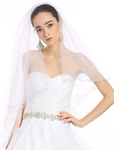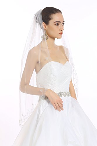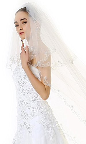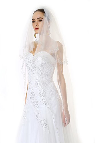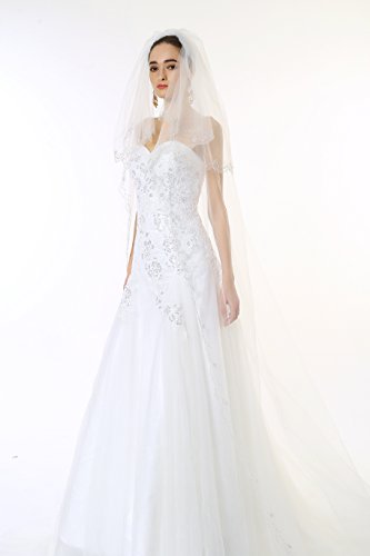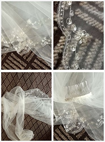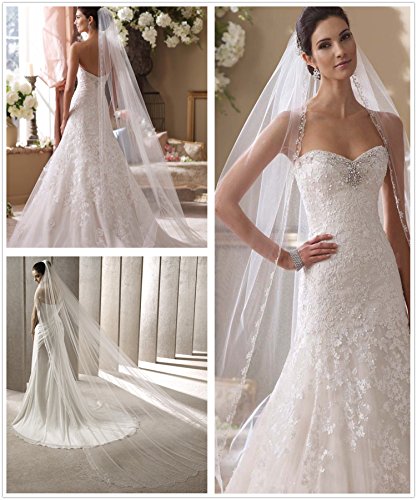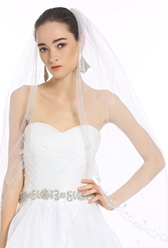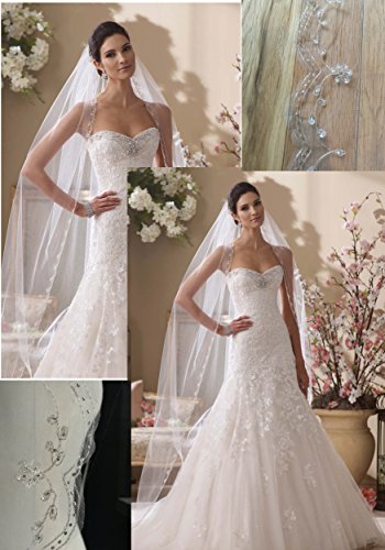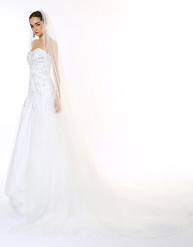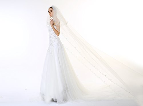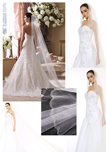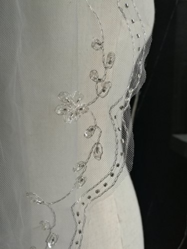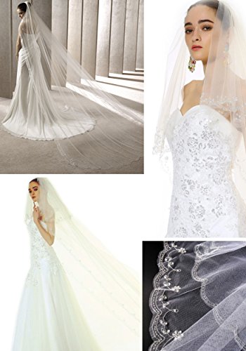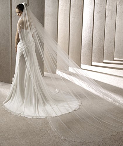 | Passat 1 Tier 3M NEW! Floral Beaded Scallop Edge Cathedral Veil Long Wedding Bridal Veil 224 |