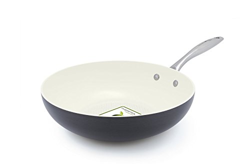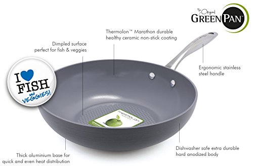 GreenPan Lima 3D I Love Fish & Veggies 11 Inch Hard Anodized Non-Stick Dishwasher Safe Ceramic Wok