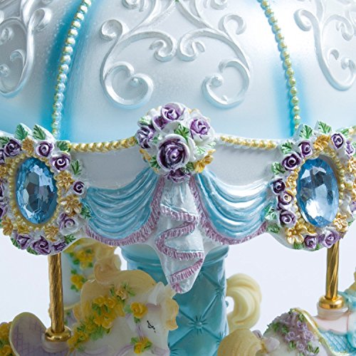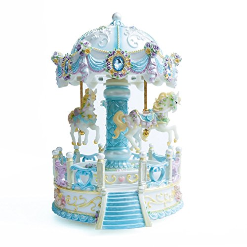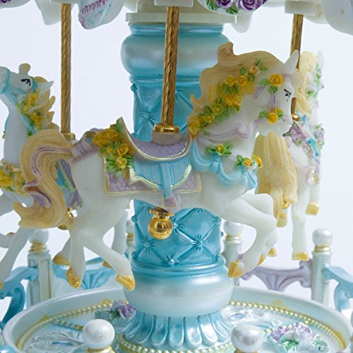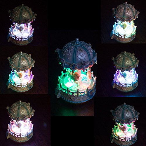 Cimogifts Luxury Color Change LED Light Luminous Rotating 3-horse Carousel Musical Box,Blue