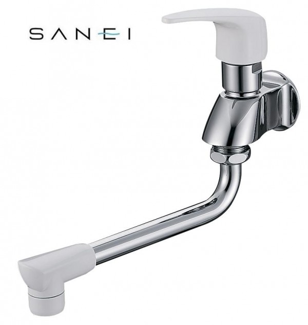 レバーを上にあげると吐水する、使いやすいシングル自在水栓です。