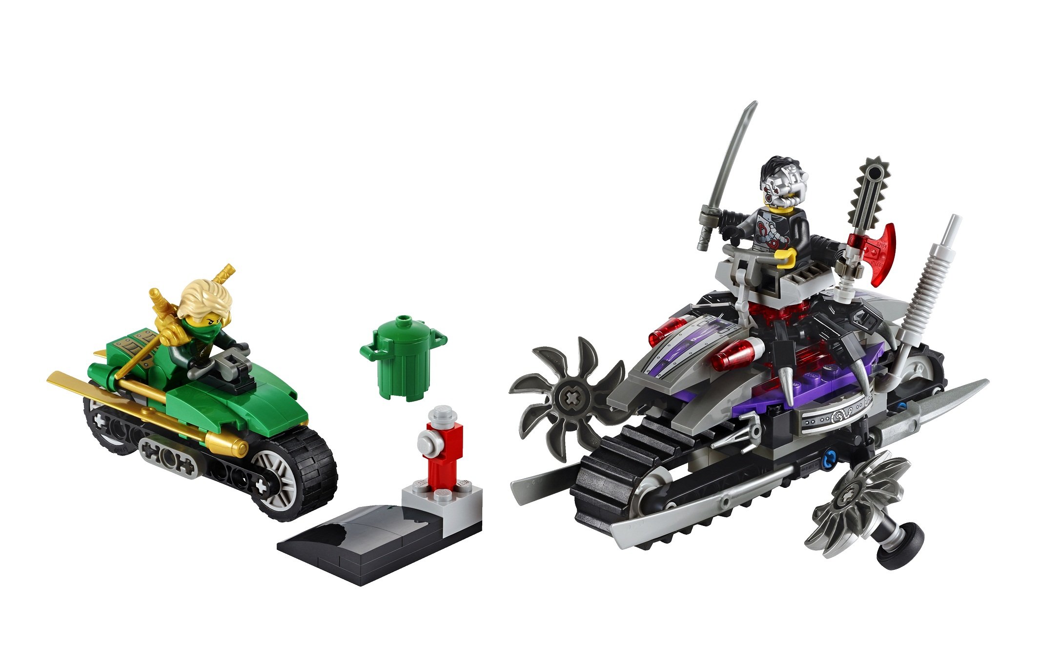 After successfully dodging the laser of the tank bike, accelerate it to the tilt head and jump over this monster machine! Over Vogue, Mini figures of Lloyd and weapons, with accessories.