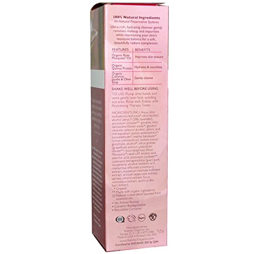 Aubrey Organics Revitalizing Therapy Cleanser With Rosa Mosqueta Rose Hip Seed Oil for Dry Skin, 3.4 fl oz (100 ml) (Pack of 2)