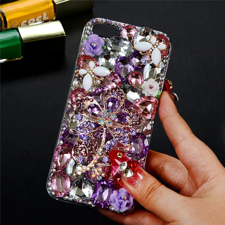 Features:Bling Colorful Diamond Flowers Glitter Crystal Hard Back Cover