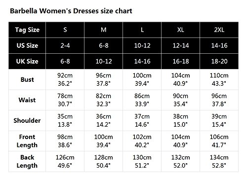2XL=Bust: 110cm/43.3"----Waist: 96cm/37.8"----Shoulder: 39cm/15.4"----Front Length: 106cm/41.7"----Back Length: 134cm/52.8"