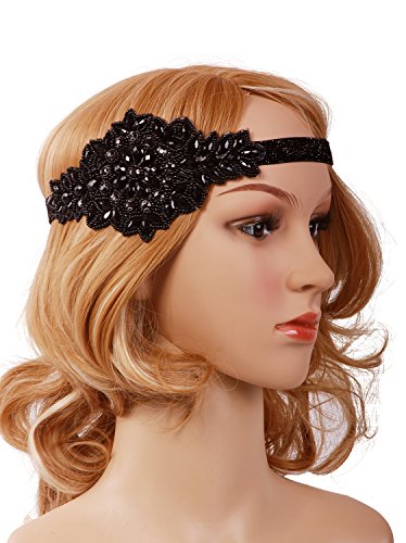 -. Feature : Material : Sequins,Beaded, / Color Type : Black / Silver / Stunning 1920s/30s style Gatsby headpiece inspired / 1920s Style Flapper Headbands and Headdresses / Suitable for Graduation, Homecomming, wedding, prom, Ball, Quinceanera, evening party or any other formal occasions
