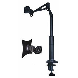-. Feature : Clamps to the edge of your desk or table / 75-mm and 100-mm standard VESA mount / Tilt, pan, rotate and swivel movements allow for optimum viewing angles / Device features a sturdy aluminum construction / Great for computer monitors up to 21"