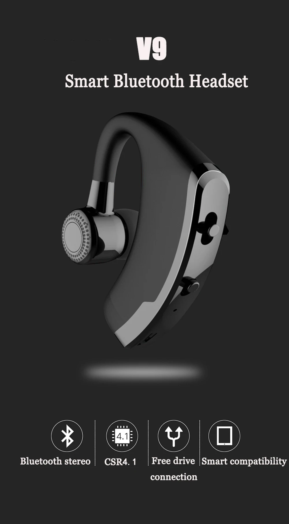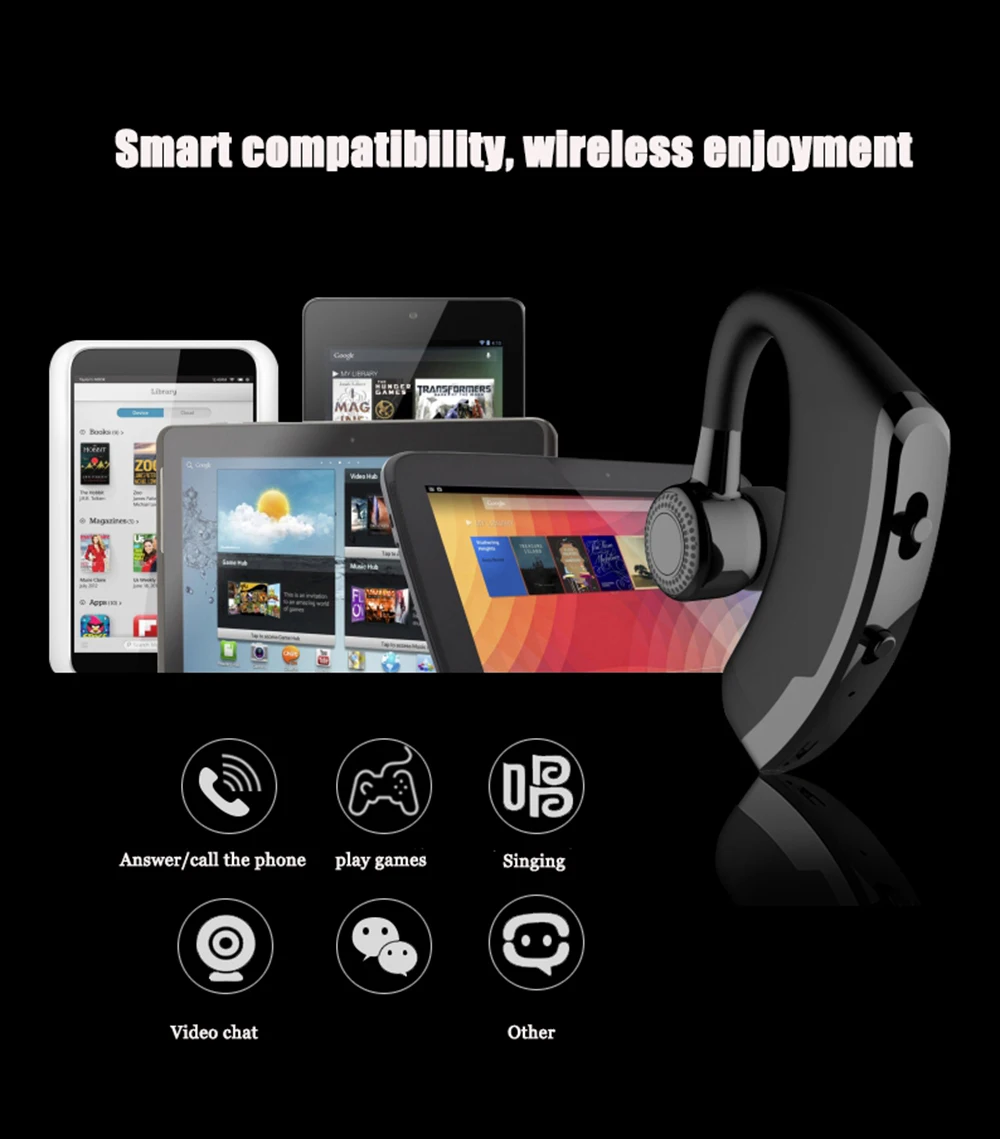 V9 Handsfree Business Bluetooth Headset With Mic Voice Control Wireless Bluetooth Earphone Headphone Sports Music Earbud