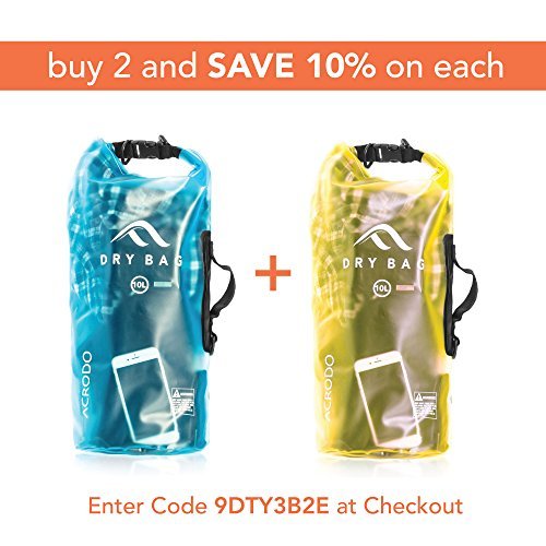 New Acrodo Waterproof Dry Bag Transparent 10 Liter Floating for Boating, Camping, and Kayaking With Shoulder Strap – Keeps Clothing & Electronics Protected