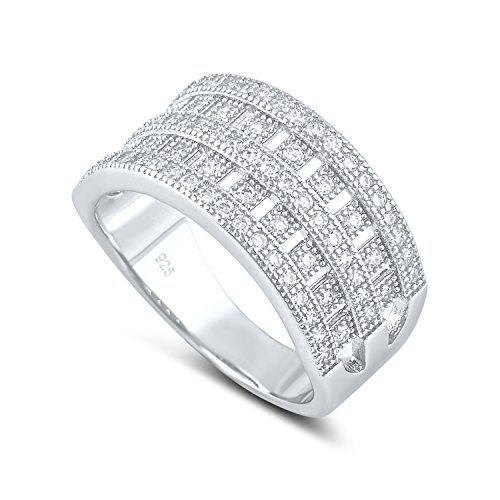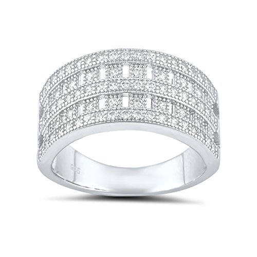 -. Title : Sterling Silver Simulated Diamond Checker Ring (Size 5 - 9)
