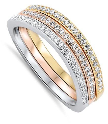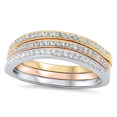 -. Title : Stackable Set Rose Gold-Tone White CZ Ring .925 Sterling Silver Band Sizes 5-10