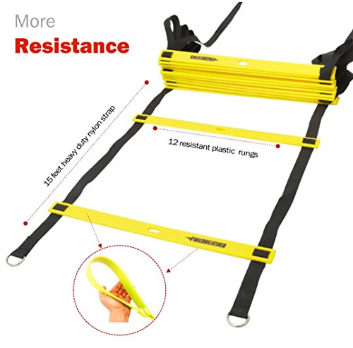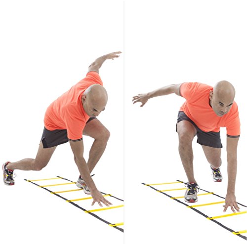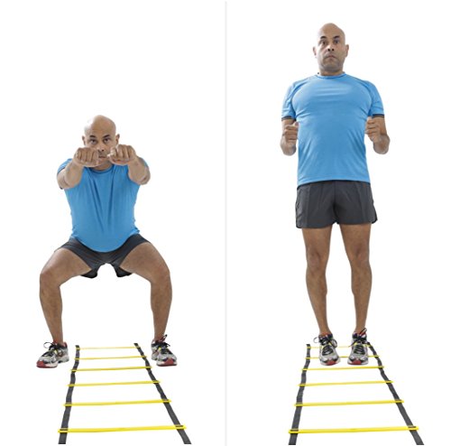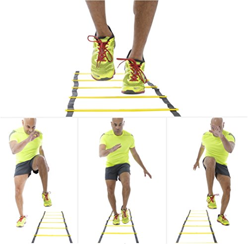 -. Feature : GET FITTER, FASTER AND STRONGER: Agility Ladder Training allows to do limitless drills that gradually boost functional performance and improve your overall fitness level. It's the secret weapon used by es and athletes in Soccer, Football, Lacrosse, Ice Hockey, Asylum and more / TAKE YOUR CARDIO TO THE NEXT LEVEL: Speed ladder drills constitute a form of High Intensity Interval Training - HIIT Workout - which by far outperforms conventional cardio. It's safe, easy and challenging at the same time / WANT TO PREVENT INJURIES? Agility Training done regularly strengthen joins, ligaments and tendons. Repeated speed shifts and direction allows connective tissues to rapidly stretch and contract making them more flexible and stronger / FULLY ADJUSTABLE: Whether you are a pro or a beginner, tall or short, agile or not, this flat ladder will fit your needs. The ladder itself is adjustable because of the nylon straps that make it easy to change the distance between rungs depending on your workout demands / THE BEST VALUE FOR MONEY: In addition to the Sport Ladder itself, you get this extras: 6 Agility Cones, 4 Pegs, a Nylon Carrying Bag & Training Drills EBook