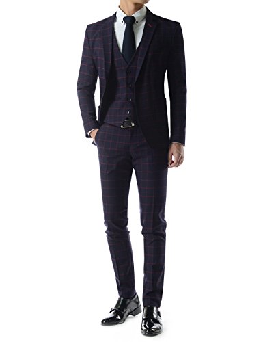 - Title : (DMS114) Modern Slim Fit Notched Lapel Single 2 Button Business Dress Suit Set BURGUNDY Chest 36(Tag size M)