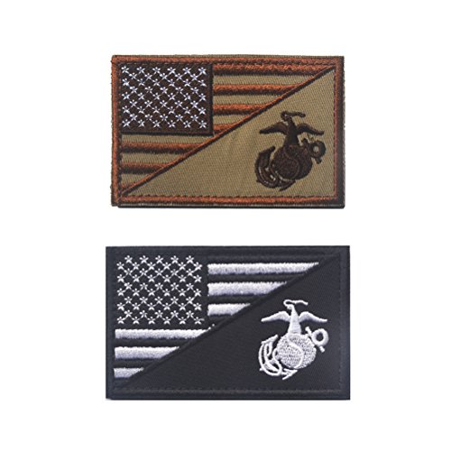 Bundle 2 pieces American USA Flag Marine Corps Usmc Black Ops patch with backing Decorative Embroidered Badge appliques Black&Brown