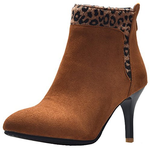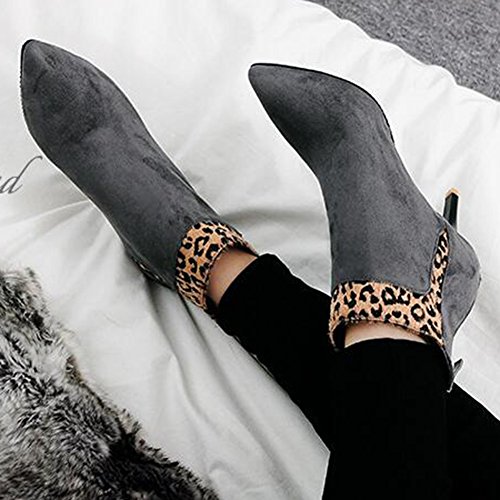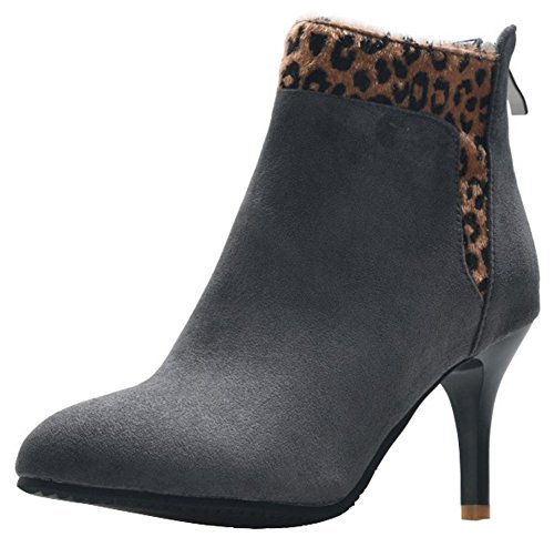 (Mofri)/Women's/Boots/DIRECT FROM USA/Mofri Women's Sexy Faux Suede Leopard Patterned Splicing Back Zipper Ankle Booties Pointed Toe ...