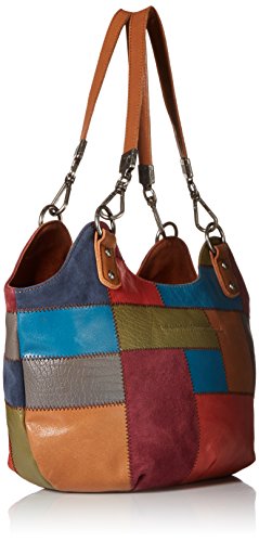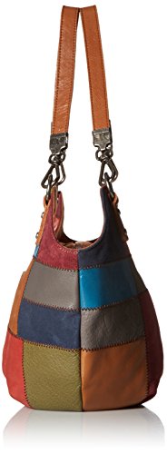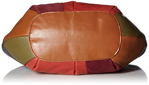 The indio satchel features multiple pockets and a detachable leather fringe keychain with metallic beads.