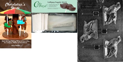 Cybrtrayd Cocker Spaniel Lolly Dog Chocolate Candy Mold with Chocolatier's Bundle, Includes 25 Lollipop Sticks, 25 Cello Bags and 25 Silver Twist Ties