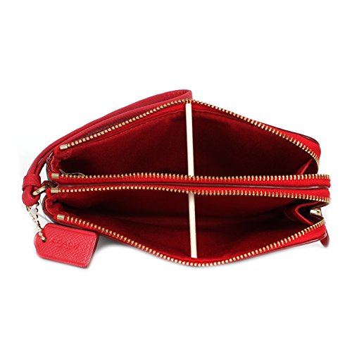 -. Title : Brown / True Red PVC Leather Double Zip Wristlet Wallet F66506