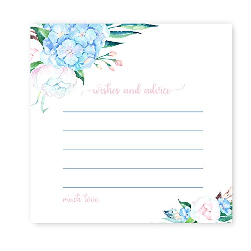 Blue Floral Wedding Advice Card Wishes for Baby Shower Game ( Set of 25 )
