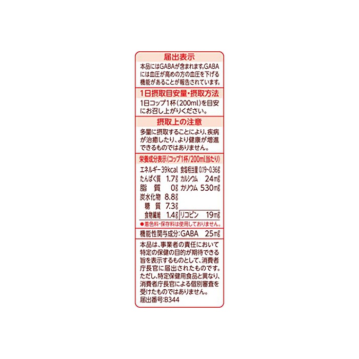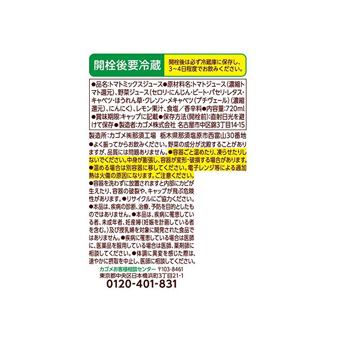 원재료:토마토 쥬스(농축 토마토 환원)고, 야채 쥬스(샐러리(당근)인삼비트 파슬리 양상추 양배추 시금치《구레손메캬베츠》(쁘띠 베일)(농축 환원)고, 마늘)고, 레몬 과즙,식염/향신료