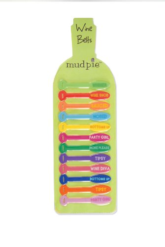 -. Binding : Kitchen -. Brand : Mud Pie -. Color : Multicolor -. EAN : 0718540069028 -. Feature : Perfect hostess gift - pair with their favorite bottle of wine / Fits any standard wine glass / Hand washing is recommended / Re-useable; set of 12 beer bottle belts / Sure to create a -inchbuzz-inch at any gathering -. Label : Mud Pie company -. Manufacturer : Mud Pie company -. Model : 116038 -. MPN : 116038 -. PackageQuantity : 1 -. PartNumber : 116038 -. ProductGroup : Kitchen -. ProductTypeName : KITCHEN -. Publisher : Mud Pie company -. Studio : Mud Pie company -. Title : Mud Pie Wine Belts -. UPC : 718540069028