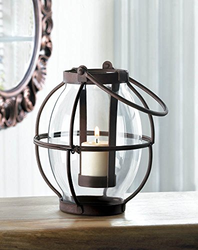 -. Feature : Dimensions: 5 3/4" diameter x 6 1/2" high; 10 1/2" high with handle. / Item weight: 0.8 lbs. / Material : Iron and Glass. / Candles (not included).