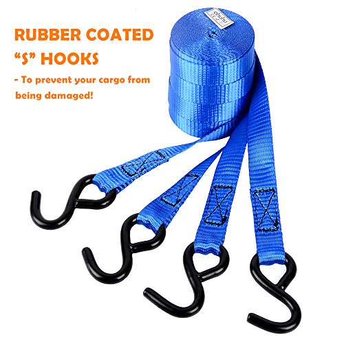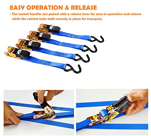 Ohuhu Ratchet Tie Downs Logistic Straps - 4 Pack - 15 Ft - 500 Lbs Load Cap - 500 Lb Break Strength