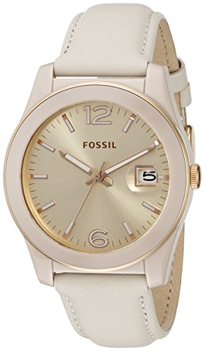 -. Title : Fossil Women's CE1089 Perfect Boyfriend Three-Hand Date Leather Watch - Toasted Almond