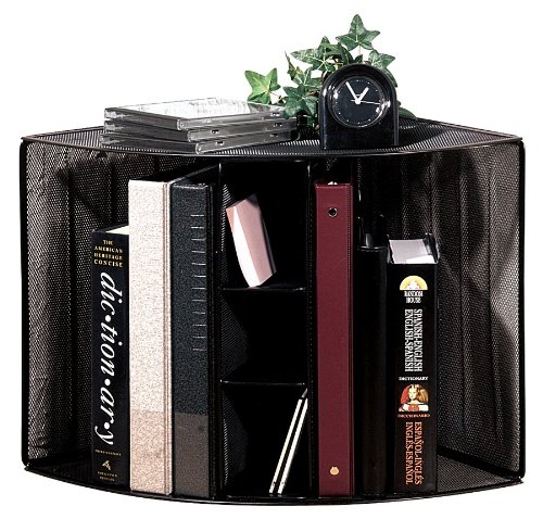 - Feature : Turn an unused corner into useful storage. / Mesh collection desk accessories have a simple and elegant industrial look and sturdy metal construction. / This storage tray's corner desktop design features a 3-shelf central divider and 2 spaces for binders, catalogs, books, papers, and files. / The 3-shelf central divider keeps even larger books upright. Assembles easily in seconds. / 14.75 inches long by 5.37 inches wide by 21.87 inches high.