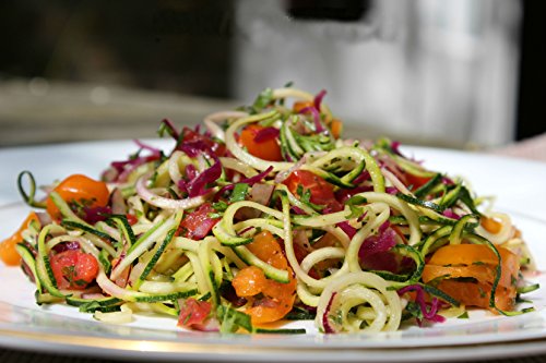 - Feature : PERFECT KITCHEN TOOL - Whether you want to impress guests; you need to prepare a healthy but interesting dinner for kids, or want to consume more raw vegetables; with the Kitchen Basics Spiralizer it will be a breeze! Spiralize zucchini, carrots, potatoes, cucumbers, radishes, etc. Make zucchini spaghetti, cucumber ribbon strands, curly fries or long, spiral apple strands and more. / PACKAGE INCLUDES 3 SETS OF BLADES - Includes all 3 blades; 1/8" (3mm) spacing, 1/4" (6mm) spacing, and a straight 1/8" (3mm) blade for long ribbon-like strands. Create all amazing foods and designs! / EASY TO USE & EASY TO CLEAN - The Kitchen Basics Spiralizer is super easy to use - No electric; No batteries; Just turn the crank and turn your vegetables into beautiful strands. / Cleanup is fast and easy; simply rinse it with warm soapy water or place it in the dishwasher. / SAFE & COMPLIANT - 100% PBA free and USDA approved materials. / 100% LIFETIME GUARANTEE - Made of heavy duty ultra-durable plastic; Superior quality stainless steel blades. We guarantee you that no other spiralizer is as heavy duty and robust as ours. Order one and see for yourself the robust quality and heavy duty construction. There is no risk whatsoever with our 100% LIFETIME GUARANTEE. If you are somehow not fully satisfied we'll issue you a full refund. NO QUESTIONS ASKED!