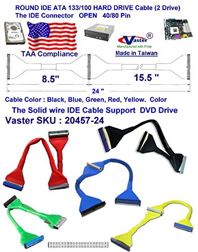 Vaster, UDMA 40/80 Round IDE/EIDE/ATA HDD Data Cable, 2 Drive 24 Inches