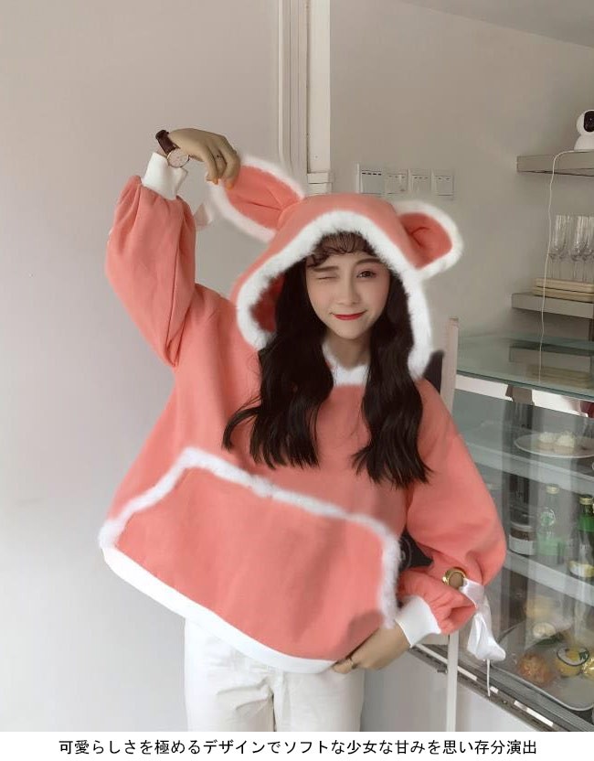 | 商品名 | レディース パーカー ゆったり 女性用 スウェットトレーナー フロントポケット 長袖 トップス フード付き 秋冬物 耳付き バルーンスリーブ |