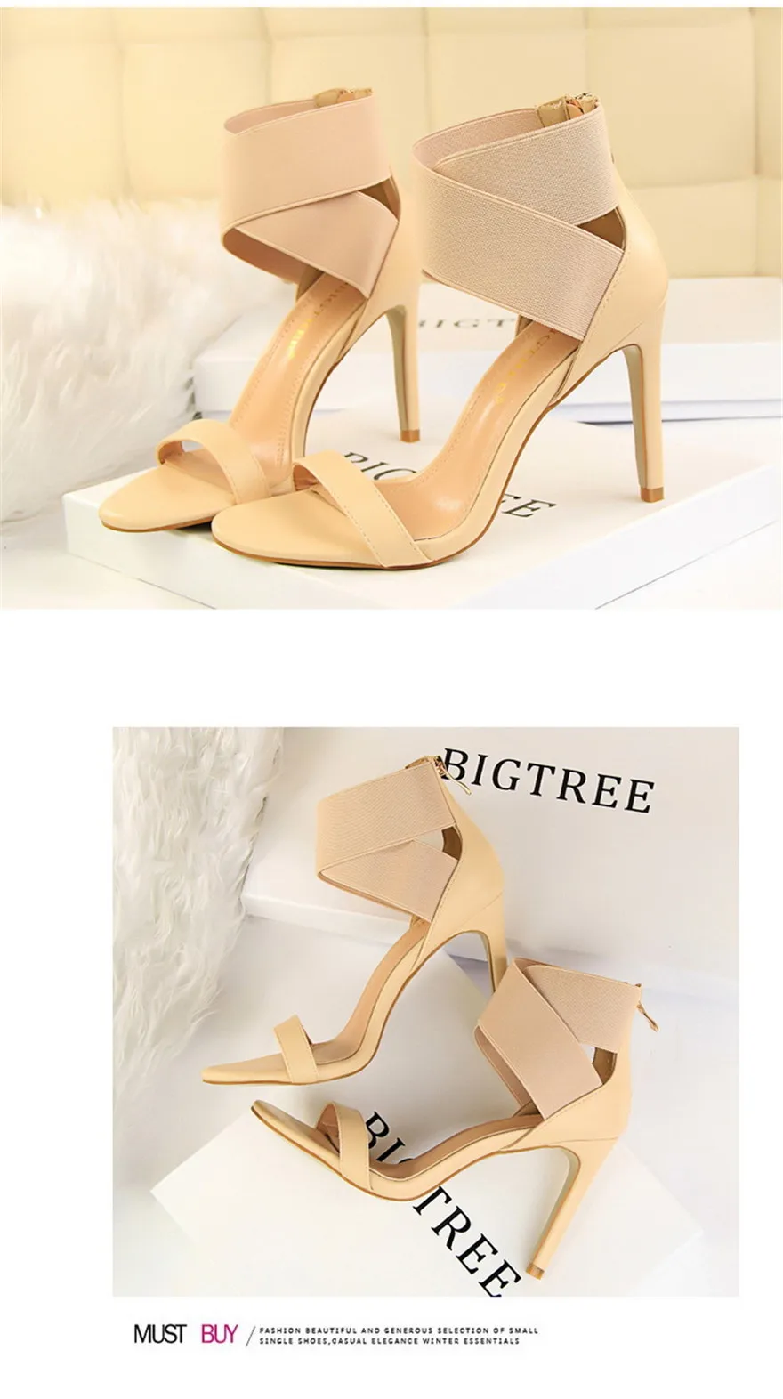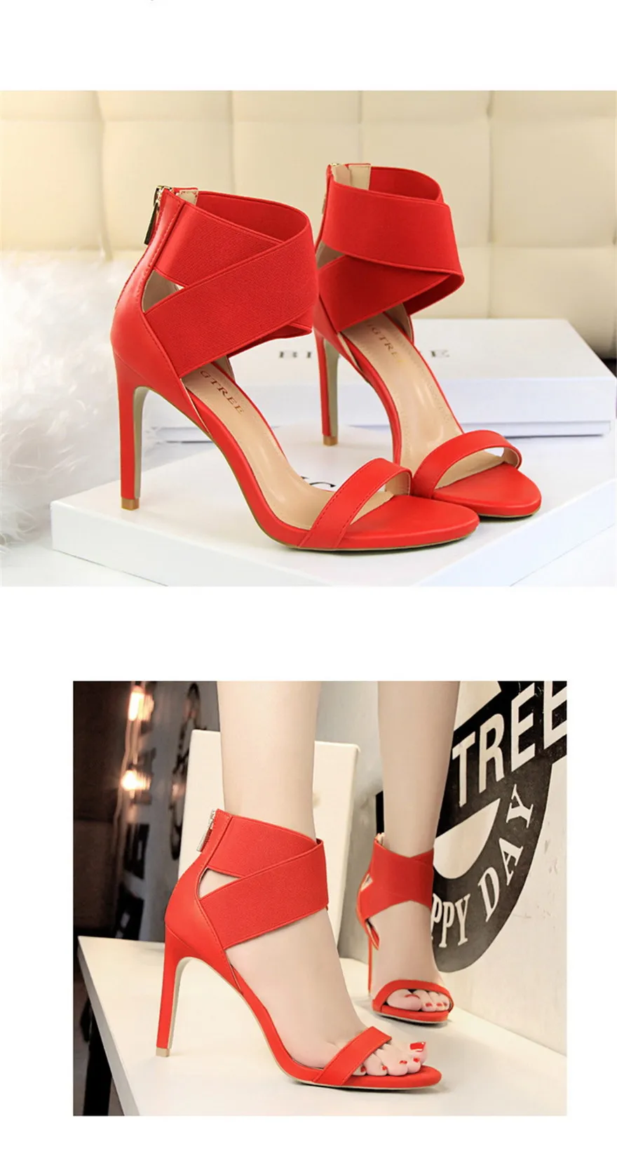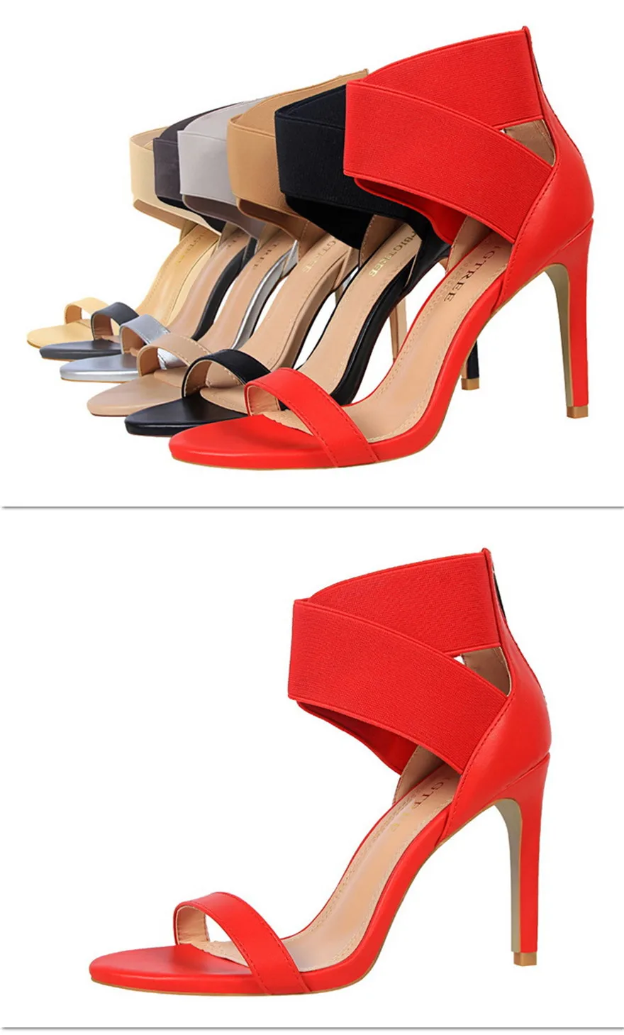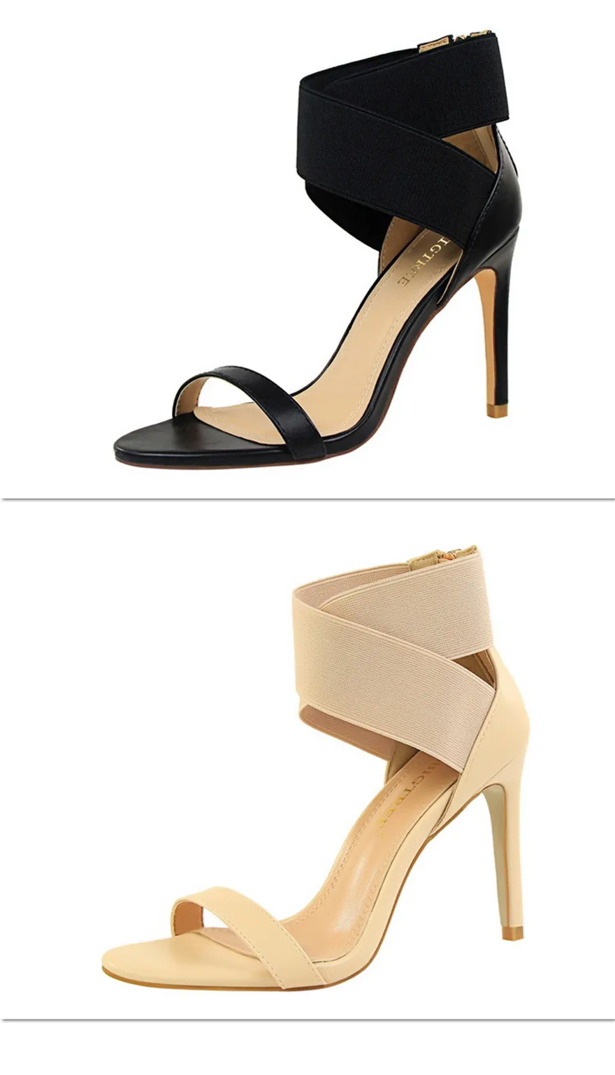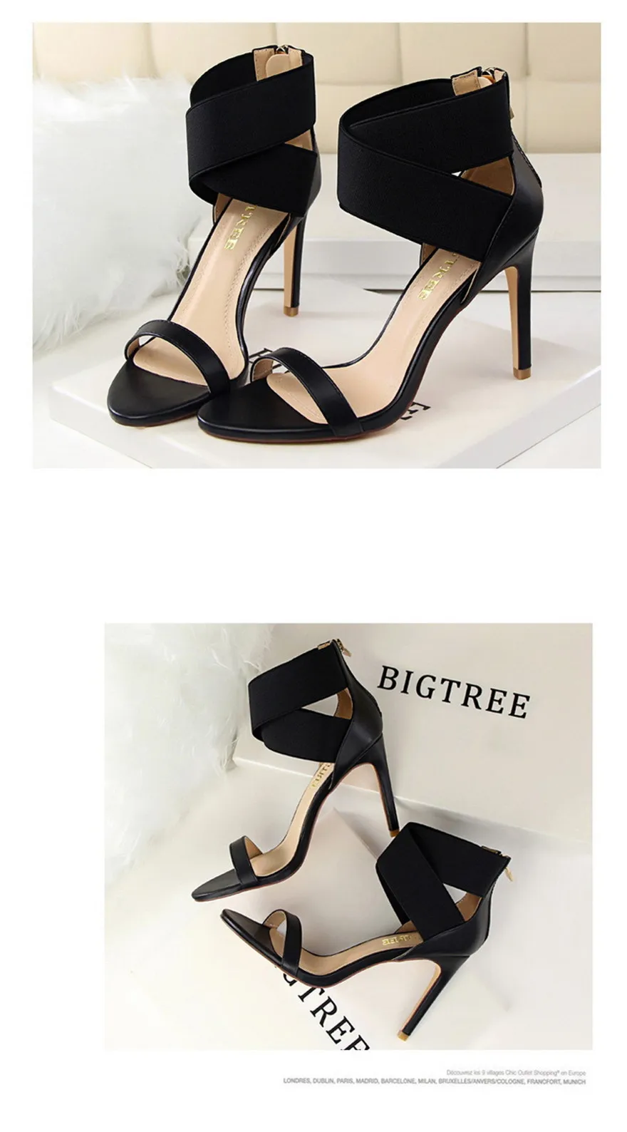 Item:New Show Thin PU Leather Open Toe Elastic Band Crossed Party Sandals