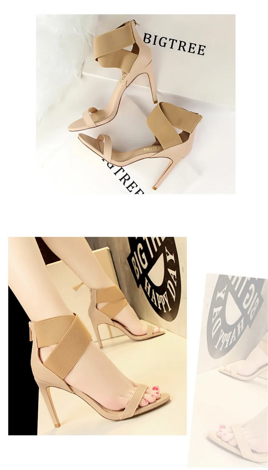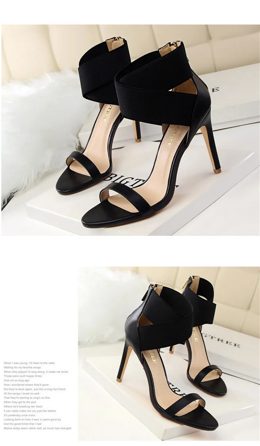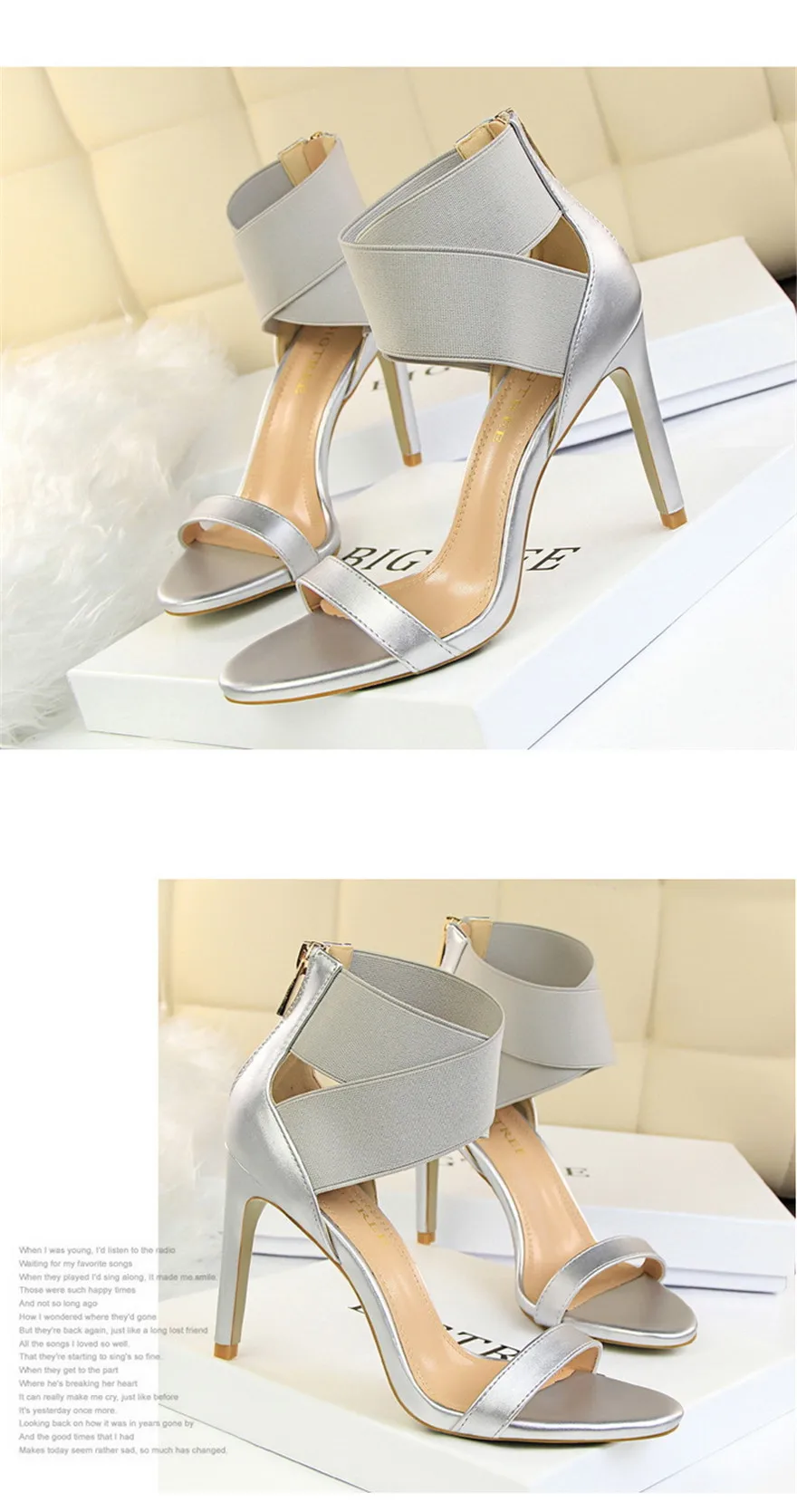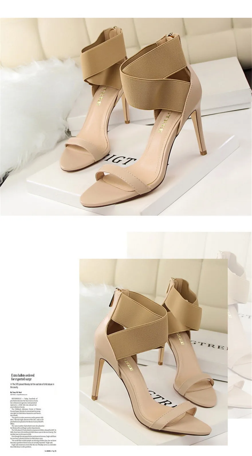 Item:New Show Thin PU Leather Open Toe Elastic Band Crossed Party Sandals