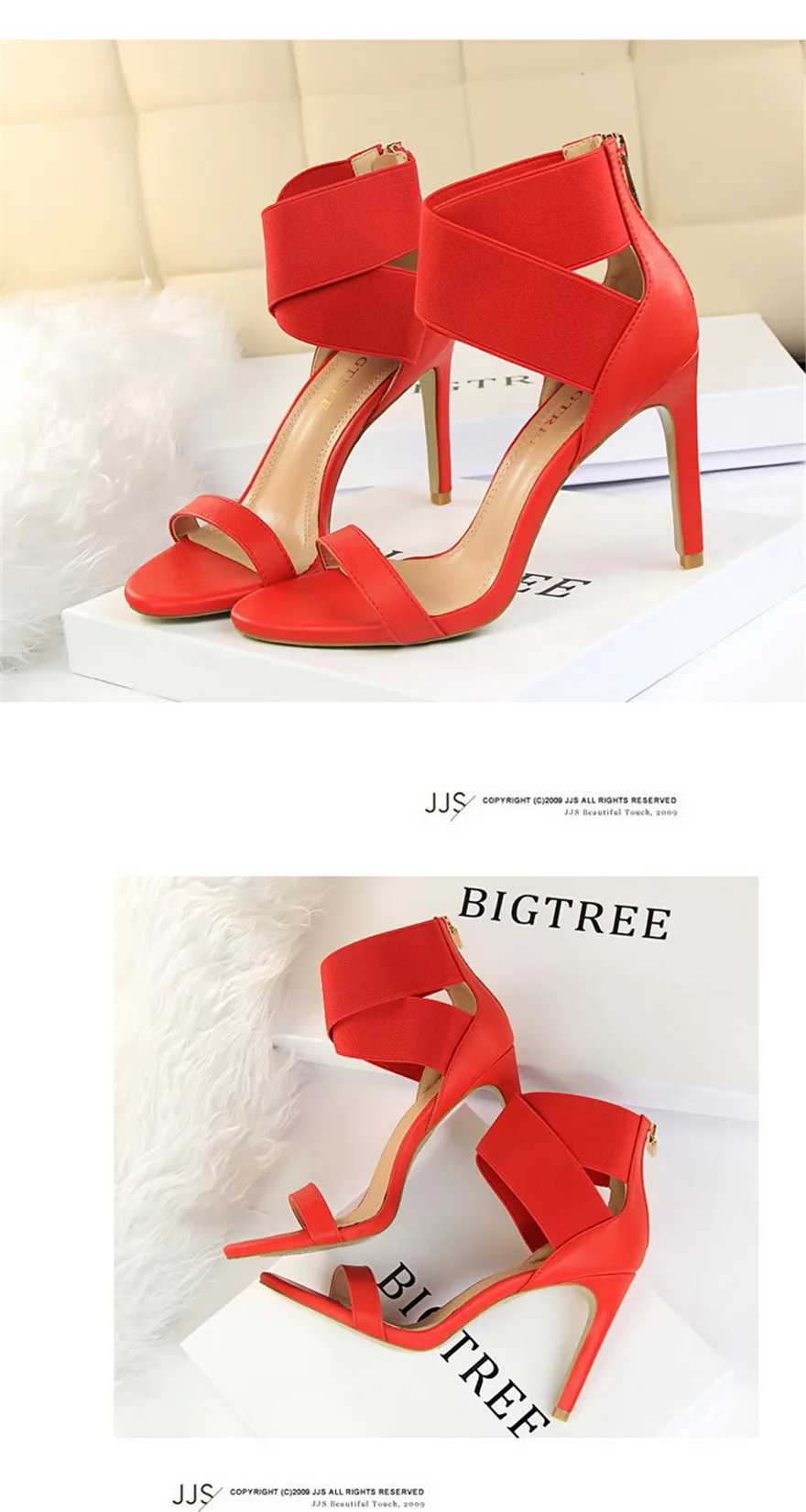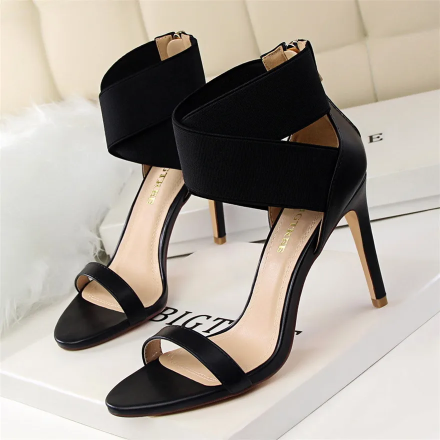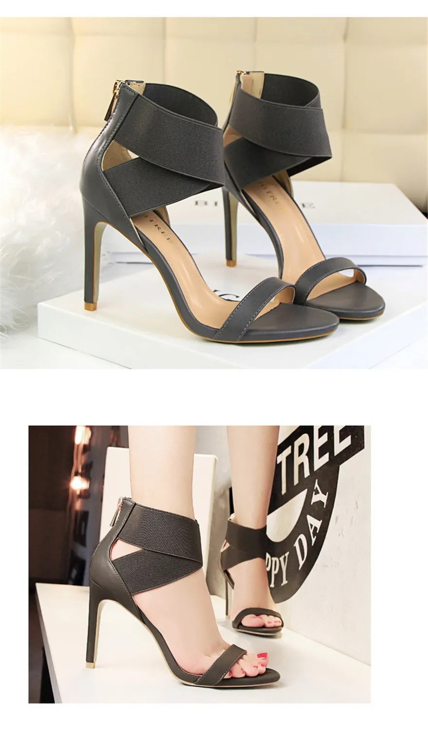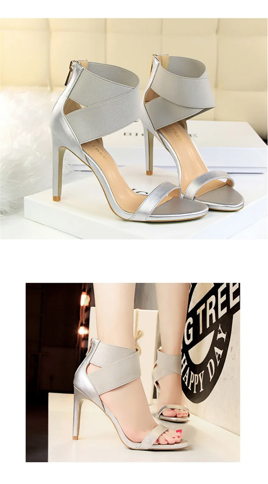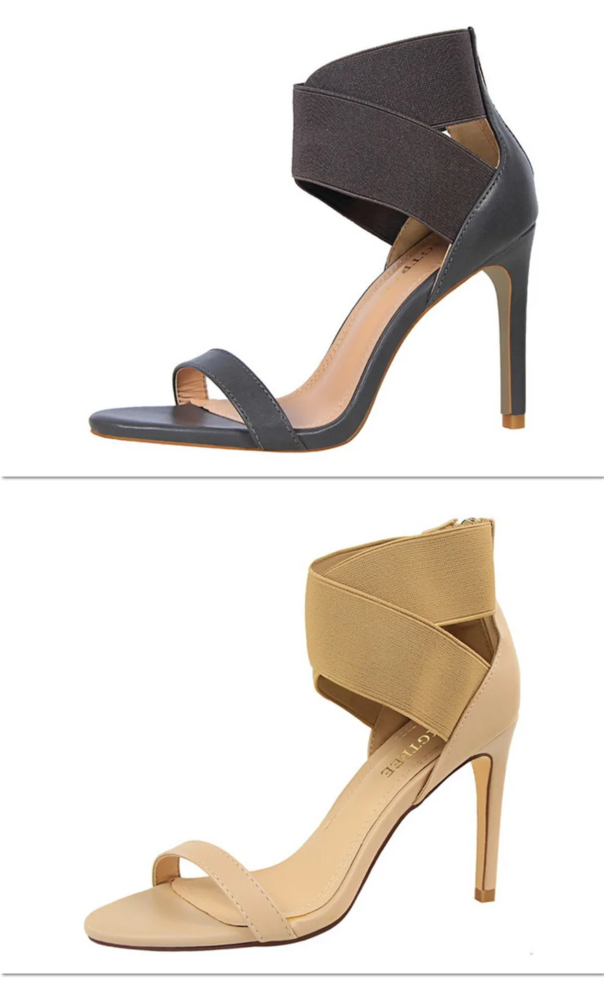 Item:New Show Thin PU Leather Open Toe Elastic Band Crossed Party Sandals