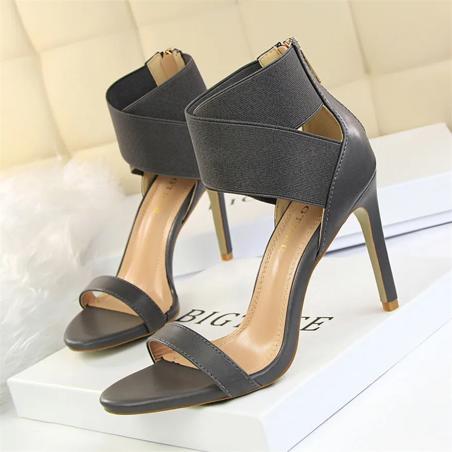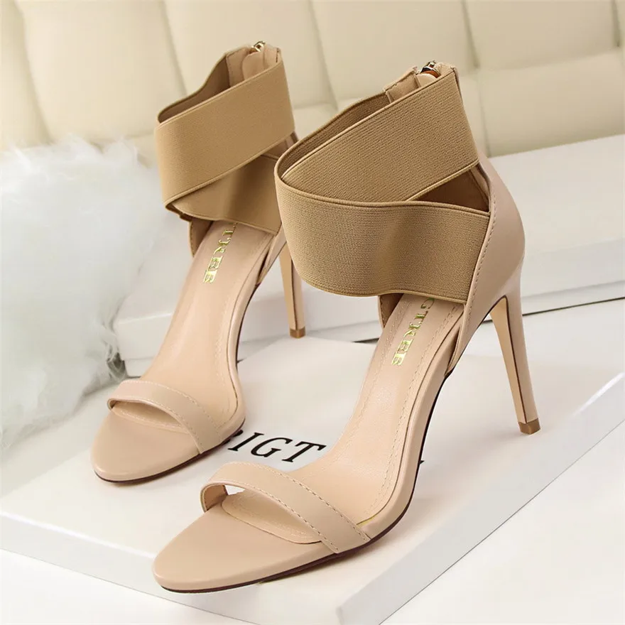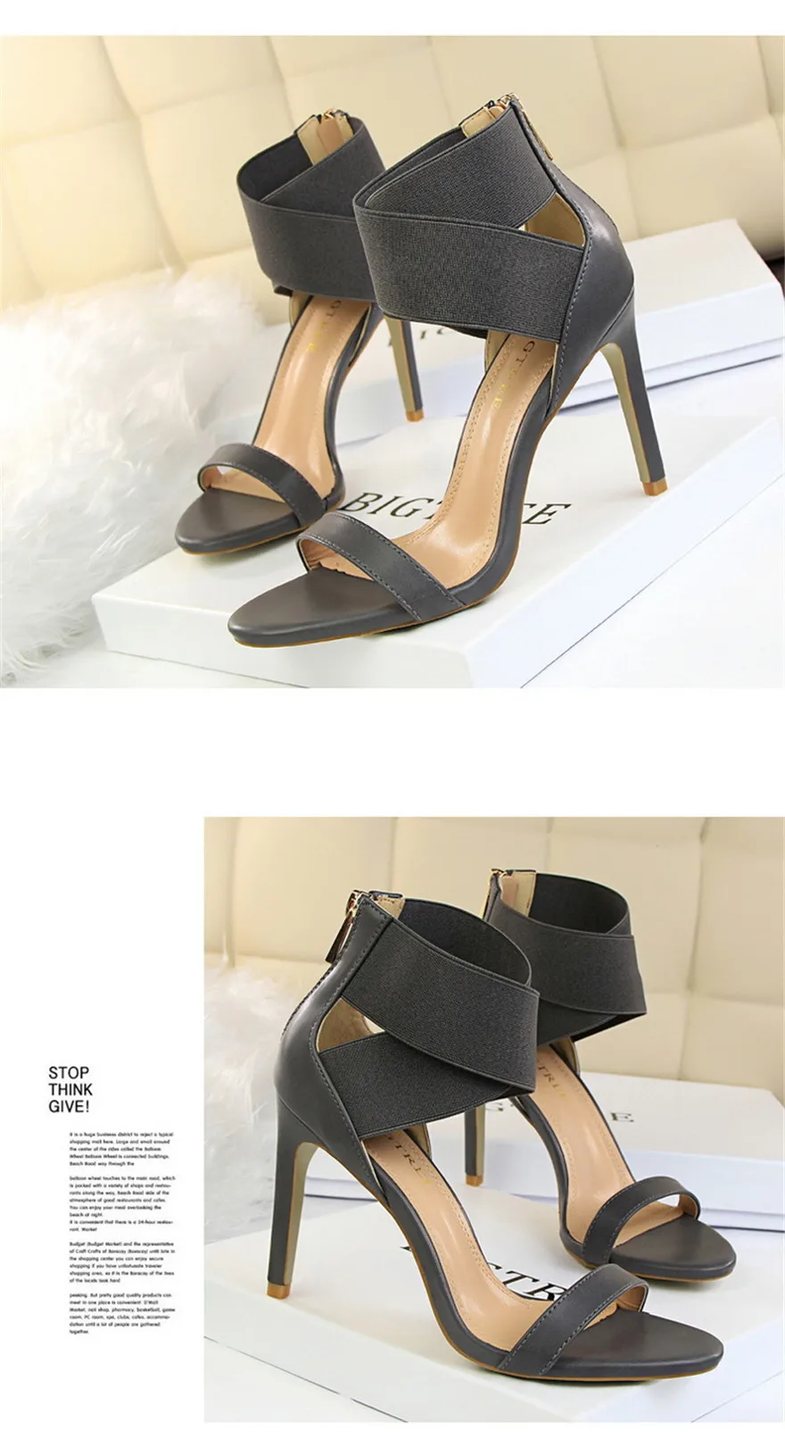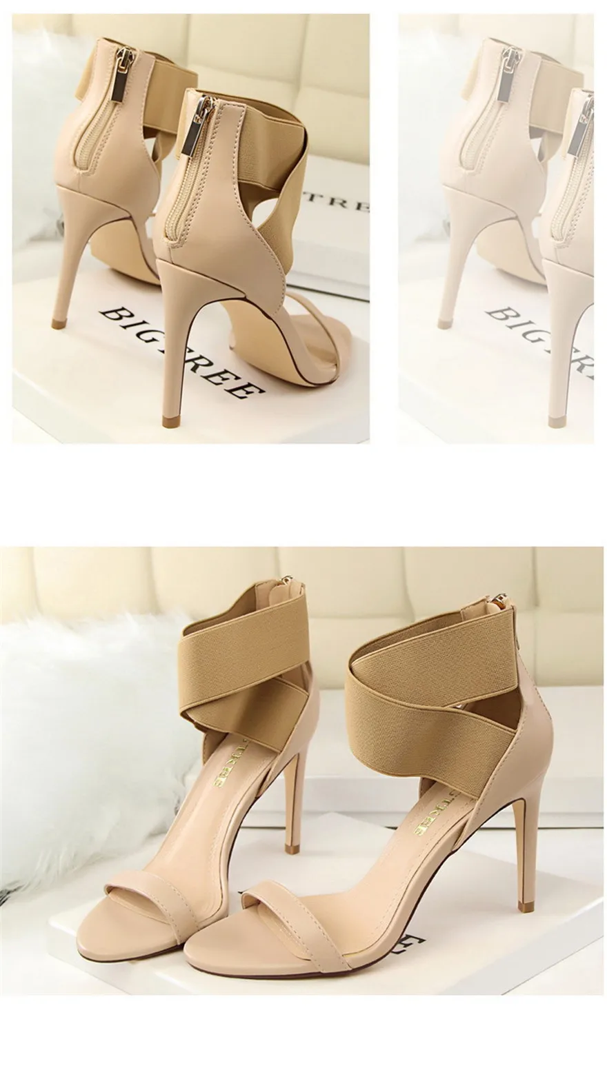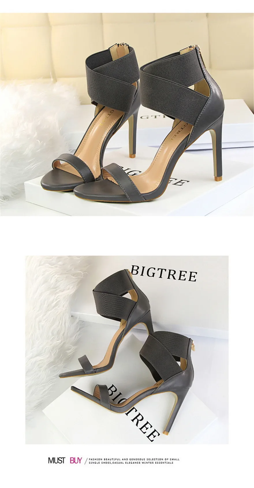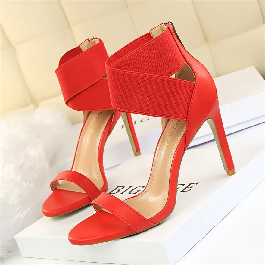 Item:New Show Thin PU Leather Open Toe Elastic Band Crossed Party Sandals