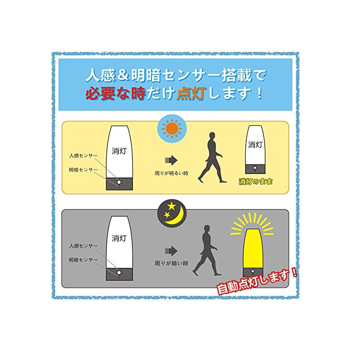 【다양한 용도】옥내의 신발장 위나 계단,복도,광,클로젯,침실,지하실,아이와 노인의 방 등과 같은 장소.전지식이기 때문에,회중전등으로서도 사용 가능합니다.정전 시나 재해시로도 도움이 됩니다.