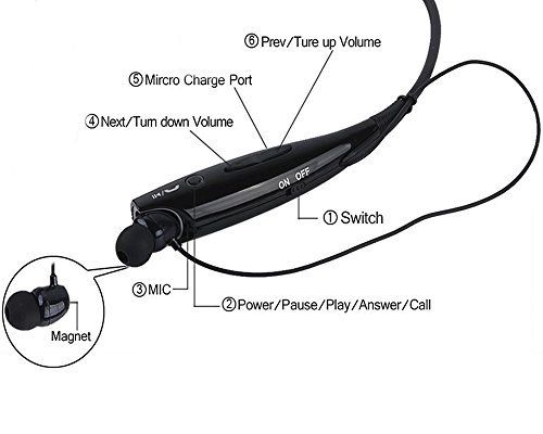 KBTEL® HV-800 Wireless Bluetooth Stereo with MIC Hands-free Headphone Headset for Sports/running & Gym/exercise Bluetooth Earbuds Headphones Headsets for Smart Phones Bluetooth Devices (Black)