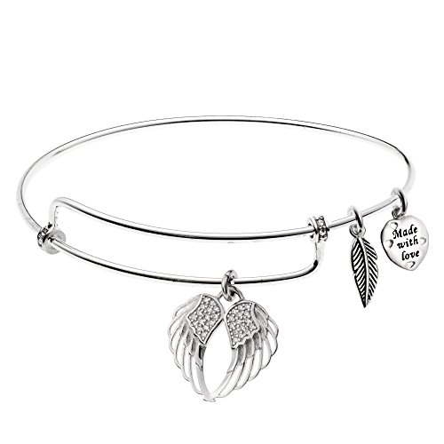 -. Binding : Jewelry -. Brand : Qina C -. Department : womens -. Feature : Made with Love by Qina C / Rhodium on 925 Sterling silver (Stamped) with CZ. The stones on the bangle are rhinestones. / Size: approximately 64mm long x 60mm wide, with 1.6mm (14GA) wire / Wrist Size: freely adjustable up to 9.5 inches -. Label : Queenberry - Alex ani style -. Manufacturer : Queenberry - Alex ani style -. Model : BS139RHX1 -. MPN : BS139RHX1 -. PartNumber : BS139RHX1 -. ProductGroup : Jewelry -. ProductTypeName : FASHIONNECKLACEBRACELETANKLET -. Publisher : Queenberry - Alex ani style -. Studio : Queenberry - Alex ani style -. Title : Rhodium On 925 Sterling Silver Angel Guardian Wing CZ Heart Feather Dangle Charm Bangle Bar Bracelet