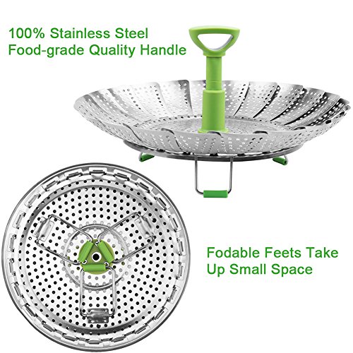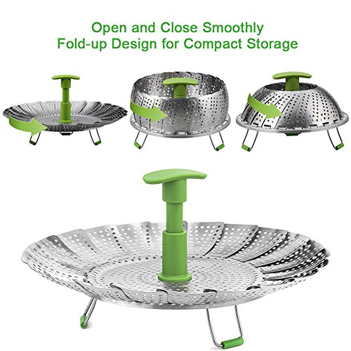 ★ [COMPACT STORAGE] Folding steamer for compact storage, expandable make it perfect fit for instant pot. Standard: 5.1-inch expands to 9-inch. Large: 6-inch expands to 11-inch. After using, just need to simply fold into their original size! You can even store them directly in your pots so they take no room