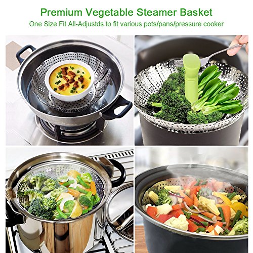 ★ [HEALTHIER COOKING CHOICES] Cooks your food with steam provide a healthier, tastier and juicier meal. Steaming is a healthy cooking choice, it helps retain more than 90% of the nutrients lost when either boiling or microwaving food. The foldable steamer basket can be used to steam veggies, seafood, eggs, meats, desserts and much more