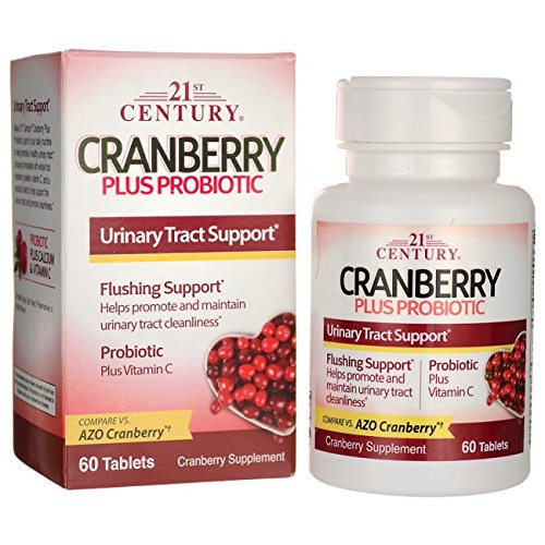 ReleaseDate : 2016-06-20 Studio : 21st Century HealthCare, Inc. Publisher : 21st Century HealthCare, Inc. Binding : Health and Beauty Product Description 21st century cranberry plus probiotic tablets offer a convenient way to get the benefits of cranberry juice without the tart taste and added sugar. Now you can skip the glass of cranberry juice and get your daily serving in 2 small tablets. Make 21st century cranberry plus probiotic a part of your daily routine to help promote a healthy urinary tract. Uniquely formulated with whole fruit cranberry powder, vitamin c, and a probiotic blend to help support the urinary tract and promote cleanliness. No added sugar, yeast, preservatives or artificial flavors. Gluten free. 21st century offers the highest quality ingredients produced to strict standards of quality for your good health. This statement has not been evaluated by the food and drug administration. This product is not intended to diagnose, treat, cure, or prevent any disease. Azo cranberry is a registered trademark of naturex. 0