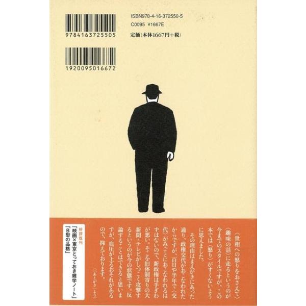【商品説明】 定価(税込み):1,800円 値引き:10% OFF 時代を観察するもっとも鋭く確かな視線。時代を観察し続ける著者のエッセイ第12弾。政権交代や芸能界、映画の薀蓄から、敗戦の記憶、面白い本、新型インフルエンザまで。 バーゲンブック 新品 特価 格安 エンターテインメント タレント ミュージシャン TV 観察 映画 エッセイ 時代 |